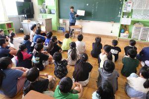地域の朗読会「窓」の皆様にお越しいただき、各学級で読み聞かせの活動を行なっています。学年に合わせた絵本や素話などを児童は真剣に聞き入っていました。